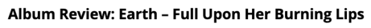 Full Upon Her Burning Lips is a complete and full expression of an aesthetic, mood, and narrative in sound. The songs blend together and feel like one meditative, transcendental trip. Carlson said of the album, “I feel like this is the fullest expression and purest distillation of what Earth does since I re-started the band.” That passion and expression shows on Full Upon Her Burning Lips.